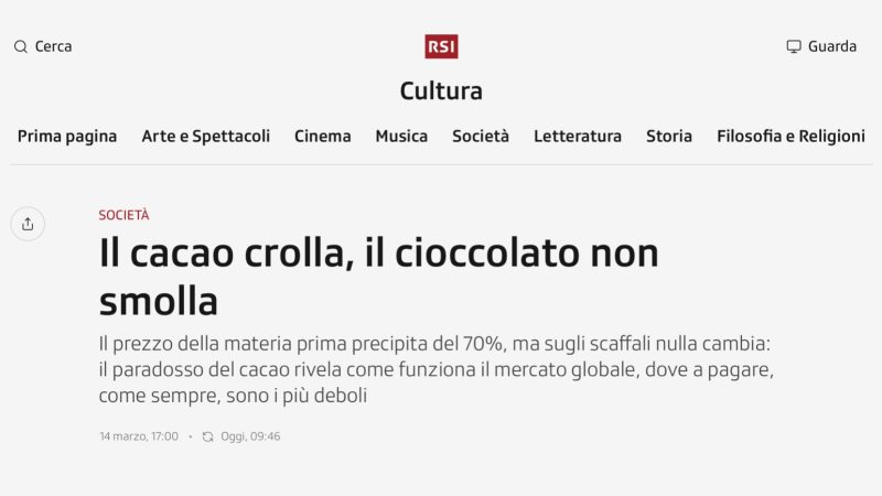 Il cacao scende, ma la barretta di cioccolato resta cara – Maurizio Mazziero spiega le ragioni a RETE DUE della Radio Svizzera Italiana