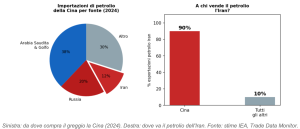 Quello che una volta era una rete dispersa di escamotage per aggirare le sanzioni — navi con bandiere false, documenti alterati, compratori in mezzo mondo — è diventata una dipendenza energetica diretta tra due soli paesi. L’Iran dipende quasi completamente da un unico cliente. La Cina, dal suo lato, conta sui barili iraniani per circa il 12% delle sue importazioni totali di greggio.