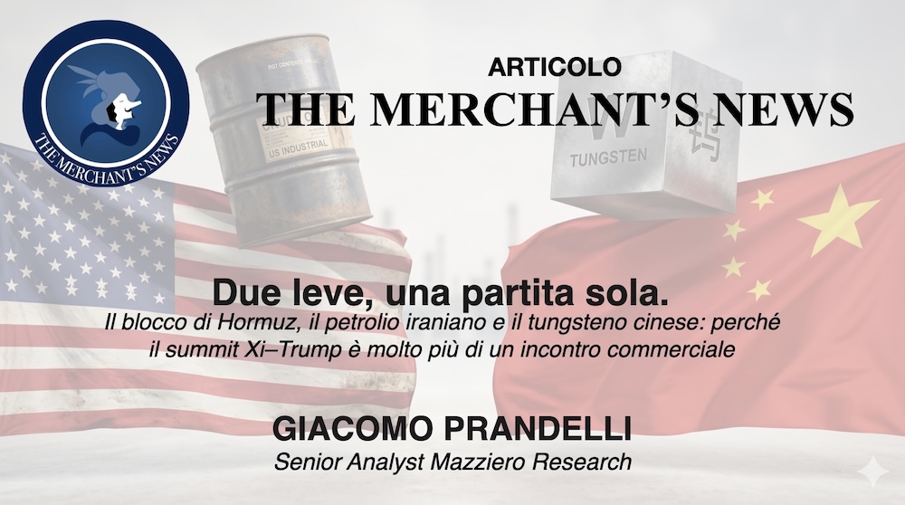 La Cina compra circa il 90% del petrolio che l’Iran riesce a esportare. Washington controlla l’acqua attraverso cui quel petrolio deve passare. La Cina, in risposta, controlla i metalli con cui l’Occidente costruisce le armi. È questo il tavolo su cui si siederanno Xi e Trump.