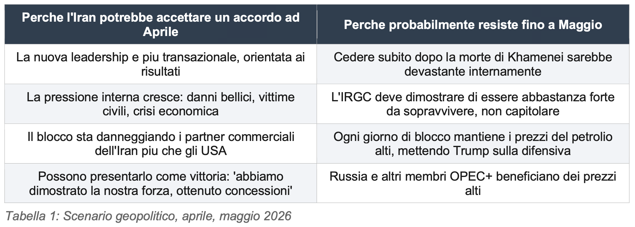 Il percorso ottimistico se Hormuz apre a maggio: