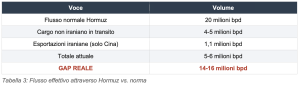 Con un deficit giornaliero di 14-16 milioni bpd, riserve strategiche che coprono al massimo il 20% del gap, produttori del Golfo con i serbatoi pieni, e uno shale USA che non è intercambiabile con il greggio che manca, il mercato non ha trovato il suo pavimento.